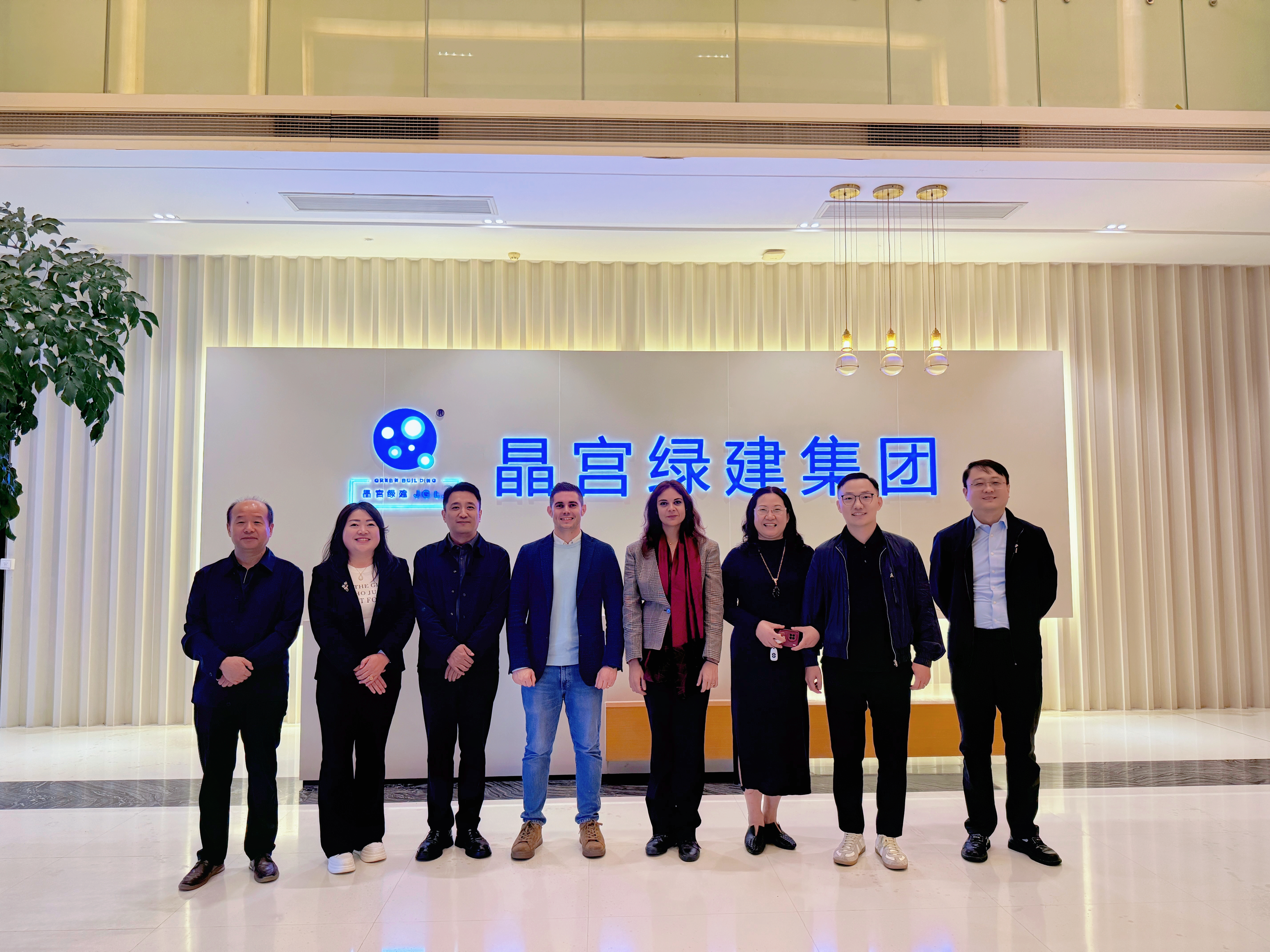 2025年7月17日至18日,葡萄牙考察團(tuán)、杭州葡聯(lián)智能科技有限公司執(zhí)行董事楊志連、杭州超銳智能激光科技有限公司總經(jīng)理王立強(qiáng)一行至晶宮綠建參觀考察。晶宮綠建集團(tuán)